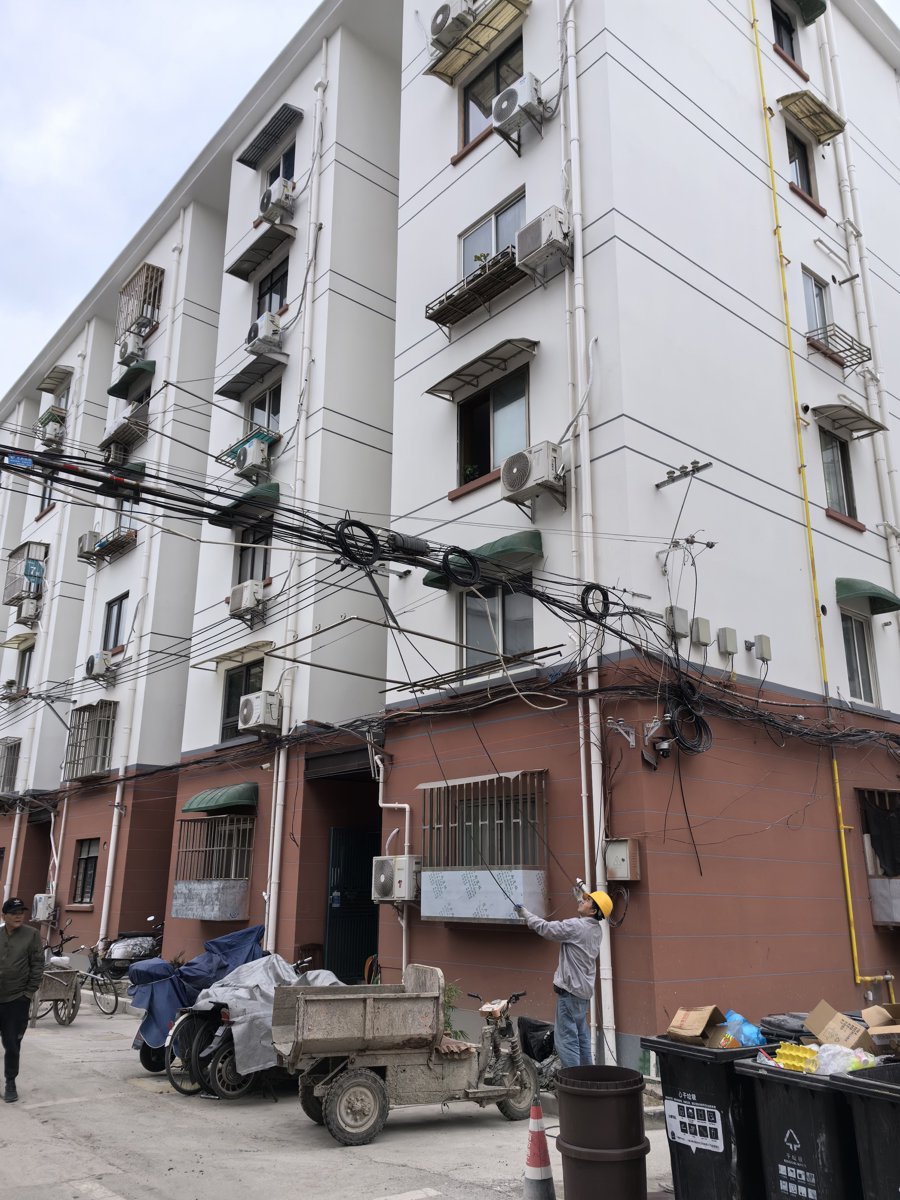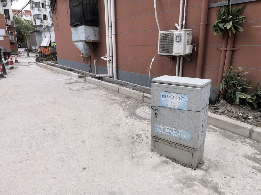 “精品小区”改造正实施了一半,长宁区甘溪路100弄小区遇上了一点困难:3个原本在不起眼位置的电信运营商的弱电箱,如今都“横”到了路上,影响了后续改造项目的推进。小区物业挨个联系运营商上门“移箱”,两家爽快答应免费迁移,有一家却坚持得收取费用。“精品小区”改造是政府实事工程,费用均由政府承担。改造需要运营商迁移线路,这笔费用该不该收?居民们认为运营商理应无条件配合实事工程的推进,但运营商却坚持企业经营,收费合情合理。碍事的弱电箱11月17日,记者来到甘溪路100弄小区。这是名为“虹园六村”的东西向狭长形老小区,除了甘溪路100弄这个门牌外,小区内西侧部分楼幢因靠近平塘路还使用了“平塘路456弄”门牌。从平塘路侧进入小区,粉刷一新的外墙面分外亮眼:“精品小区”的改造已颇见成效,离平塘路大门不远处正在修砌全新的垃圾房,大部分楼幢已完成雨污分流改造,开挖过的地面已回填并进行了水泥硬化。大门口张贴的“施工告示”显示,接下来的重点将是平塘路侧门卫、门头和景墙的再造……